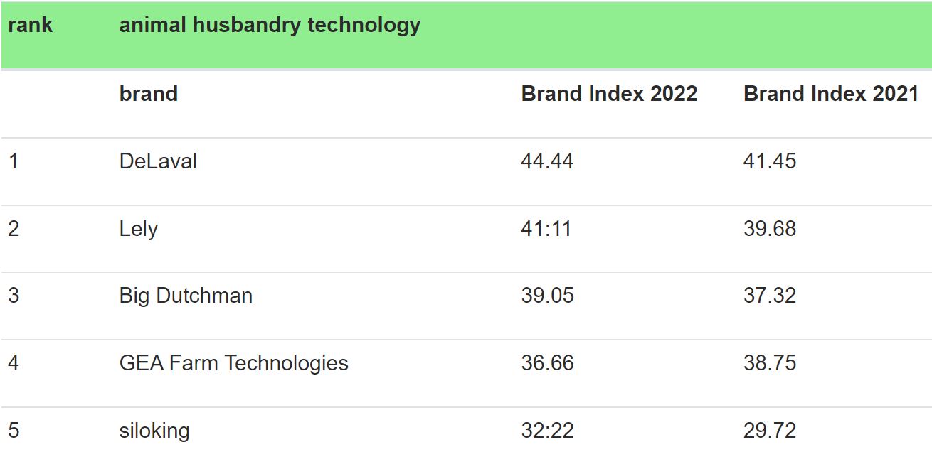 DeLaval se již popáté za sebou umístil na prvním místě v německém DLG ImageBarometer. V aktuálním ročníku 2021/2022 dokázal obhájit své prvenství v oblasti technologií chovu zvířat a navázat tak na úspěchy z let minulých.