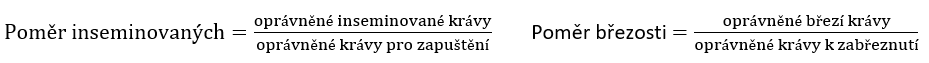 Pro výpočet každého z poměrů používá software DelPro FarmManager počet oprávněných krav, které byly inseminovány nebo zabřezly v daném období, který je dělen celkovou „rizikovou“ populací (nebo krávami, které přichází v úvahu) za to stejné období.