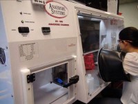 Anaerobní komora v DeLaval laboratoři Technologického centra pro hygienu, Kansas City, Missouri USA