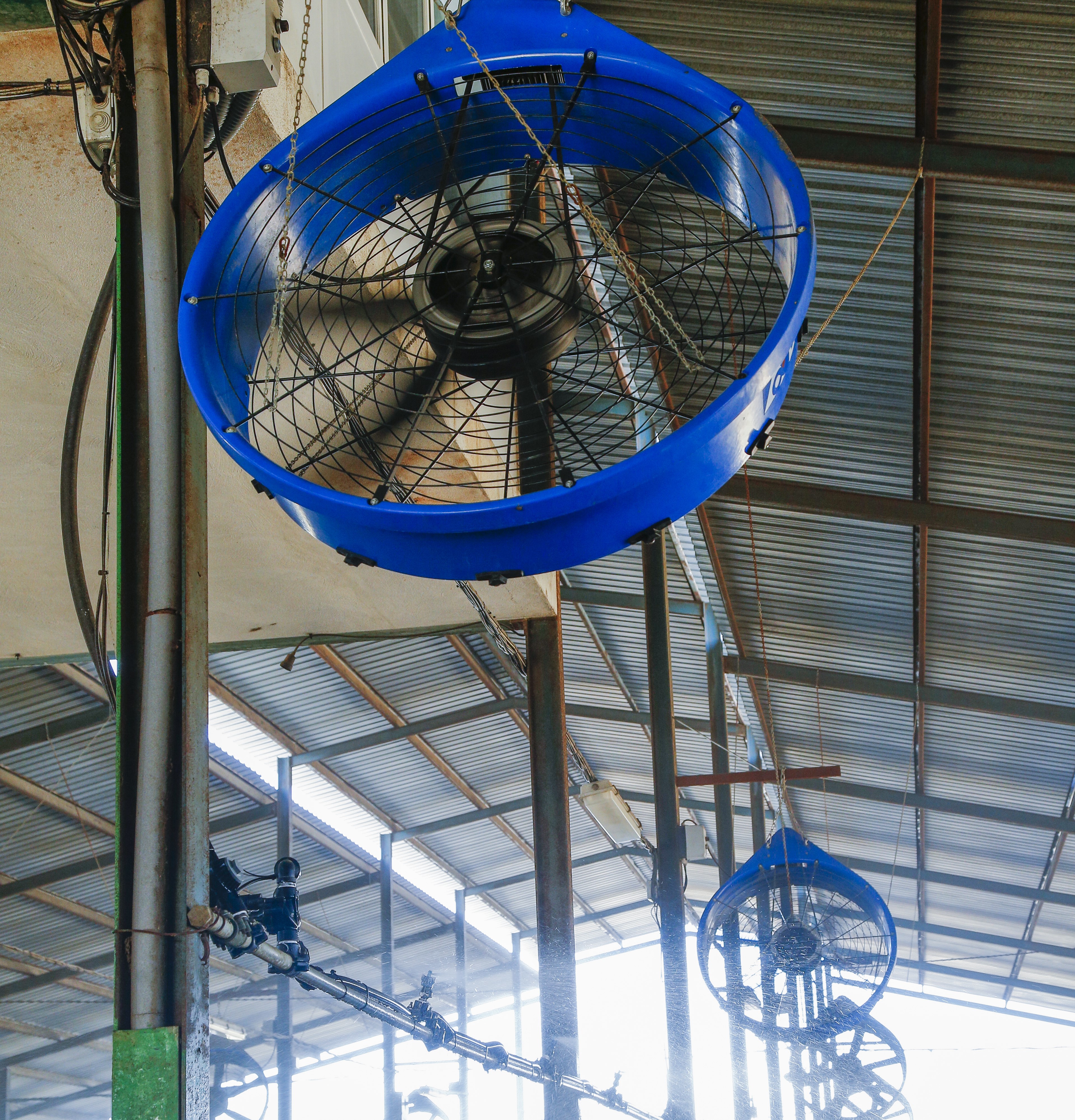 Integrovaný systém ventilátoru a rozprašovače vody zajišťuje účinné ochlazení, zatímco krávy čekají na dojení nebo jsou v krmišti u krmné zábrany. Systém poskytuje optimální rovnováhu mezi velikostí kapek a úhlem kontaktu, aby se voda dostala do kravské srsti a na kůži. To maximalizuje přenos tepla a efektivní využití vody. Bez zajištění této rovnováhy dochází k plýtvání vodou. Voda buď ulpí na srsti krávy nebo končí v kalužích na podlaze. Pro zajištění optimálního ochlazení lze pro různé úrovně horka a klimatické podmínky nastavit rozličnou frekvenci a délku cyklů.