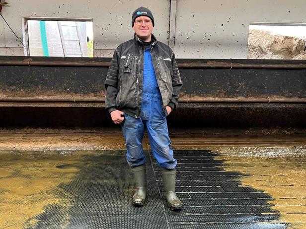- Min dyrlæge gjorde mig opmærksom på, at pr. 1. juli 2024 er det et lovkrav at have eftergiveligt gulv på opsamlingspladsen. Jeg så ikke nogen grund til at vente så længe, da jeg ikke er i tvivl, om at det forbedrer dyrevelfærd, og det fremmer køernes velbefindende og dermed produktionen, forklarer Brian.