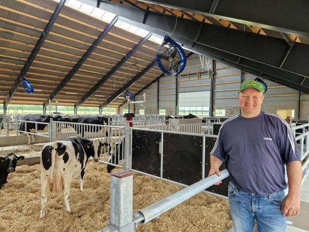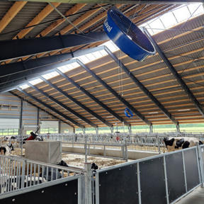 Han har siden 2020 haft 8 stk. DeLaval ventilatorer DDF1200S i den gamle stald over sengebåse, opsamlingsplads og dybstrøelse. I 2021 fik han endnu 8 stk. DDF1200S i hans nybyggede kostald. Carsten ved derfor hvad ventilatorer kan gøre for at minimere varmestress hos køer.