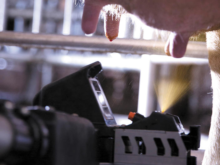With all the great features of DeLaval VMS™ V300 and the ability to automate pregnancy checks and heat detection during milking with DeLaval RePro™. The VMS V310 provides advantages that will extend to future generations of your herd. With progesterone based sampling and analysis, full pregnancy and heat detection can now be done automatically during the milking process.