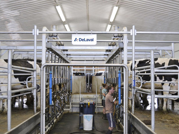 Operator safety is prioritized in DeLaval HB50. With no posts between the butt pan and curbing, there’s no risk of the milker’s arm being kicked against a post. The top rump rail is offset closer to the operator pit than the lower rump rail and follows the contour of the cow’s back legs in their natural standing position. This enables the cow to stand comfortably and close to the operator making it safer for the milker. With the optional air indexing that moves the cow closer to the kick rail and butt pan, the udder is easy to reach. This speeds up cluster attachment while helping reduce the risk of back strain.