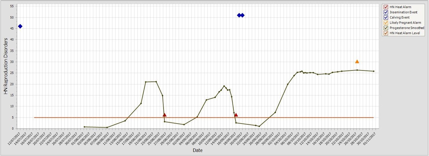 Figure 3; DelPro with Herd Navigator measured progesterone values in the milk