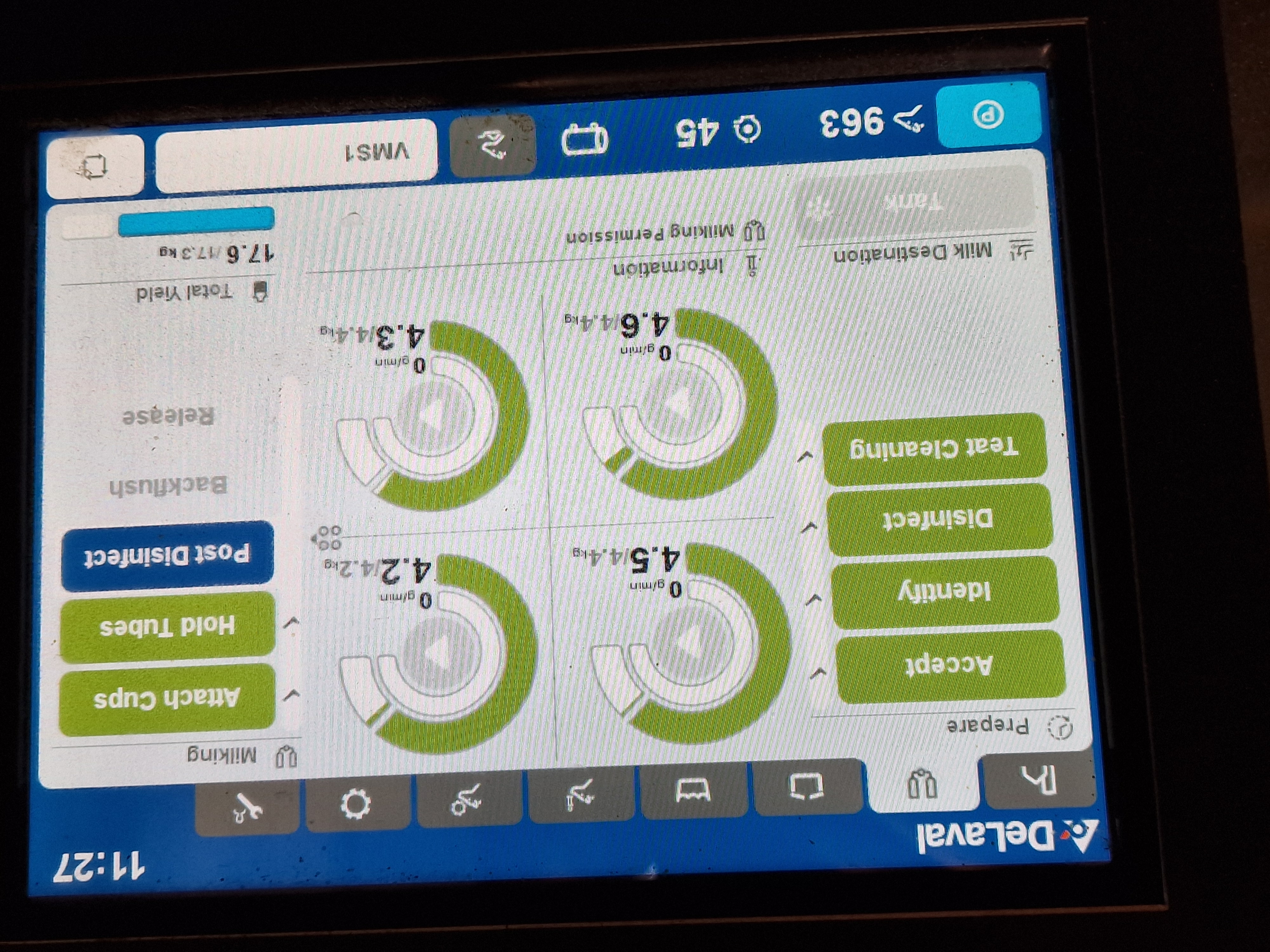 Currently the parlour is used to milk lower yielding cows that come off the robots at about 220 days or when yield has dropped to around 30 litres.