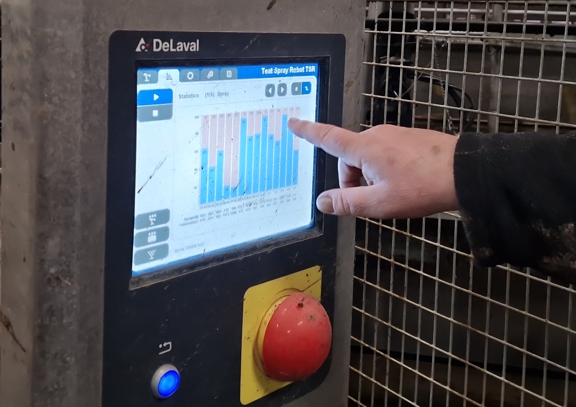 With the construction work complete, milking started in May 2023. Since then, Chris has been learning to make use of the plethora of data obtained by DeLaval’s DelPro software. The staff are also benefiting from the teat spray robot (TSR) which has helped to speed up milking.