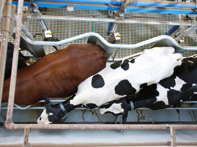 Operator safety is prioritized in DeLaval HB30. With no posts between the butt pan and curbing, there’s no risk of the milker’s arm being kicked against a post. The top rump rail is offset closer to the operator pit than the lower rump rail and follows the contour of the cow’s back legs in their natural standing position. This enables the cow to stand comfortably and close to the operator making it safer for the milker. With the optional air indexing that moves the cow closer to the kick rail and butt pan, the udder is easy to reach. This speeds up cluster attachment while helping reduce the risk of back strain.