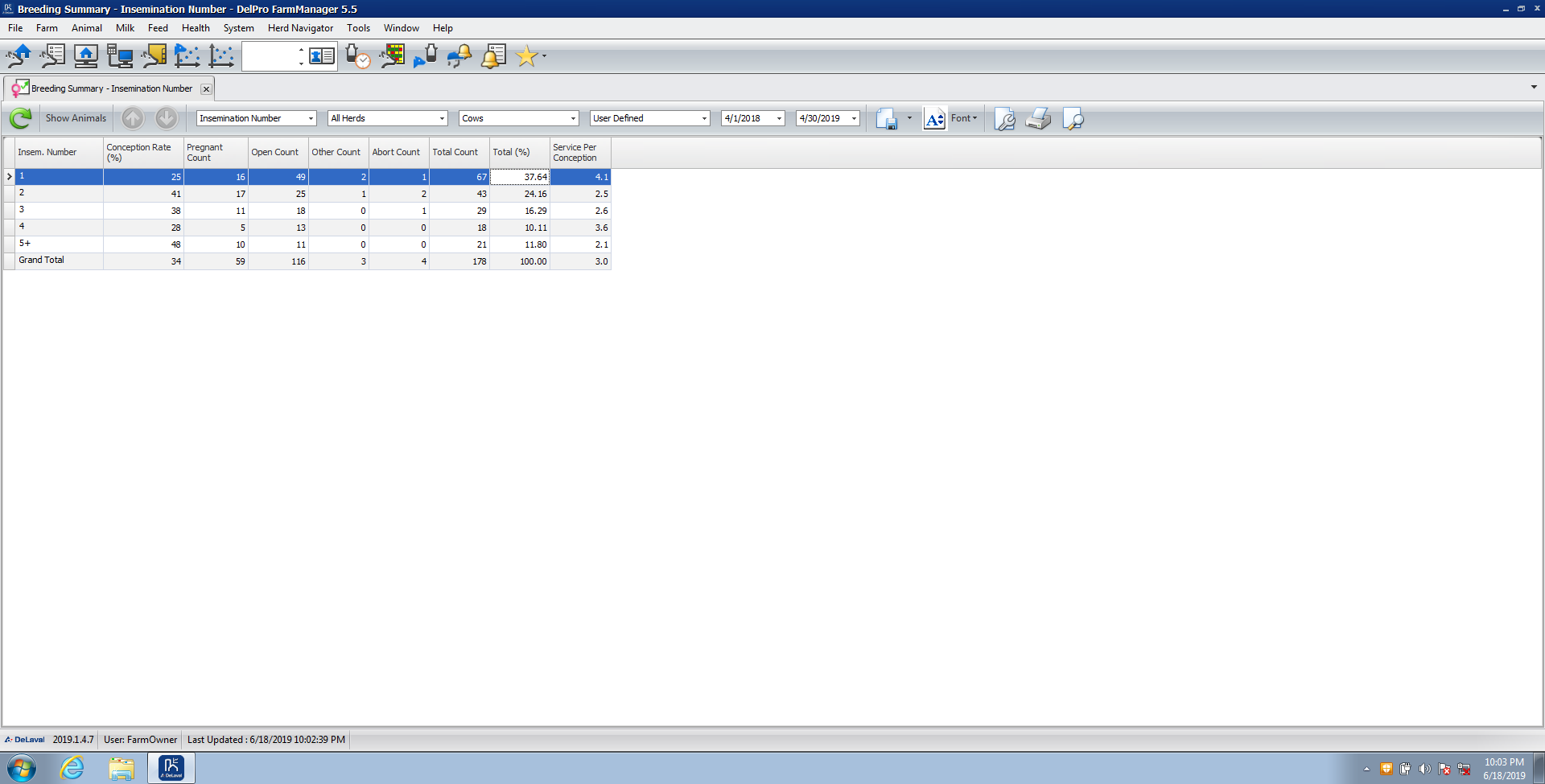 Las evaluaciones representadas en el Resumen de Reproducción, se centran en el éxito de los diferentes factores de inseminación y se conocen generalmente como Tasa de Concepción (CR%), o servicios por concepción. En estos casos específicos, el análisis presenta a las vacas (lactancia 1 y mayor) y a las terneras (lactancia 0) como grupos separados, dependiendo de la vista seleccionada. El éxito de una inseminación depende de múltiples factores; y a menudo es el resultado de una combinación de esos factores. En DelPro FarmManager presentamos los factores más comunes que afectan el éxito de la inseminación.