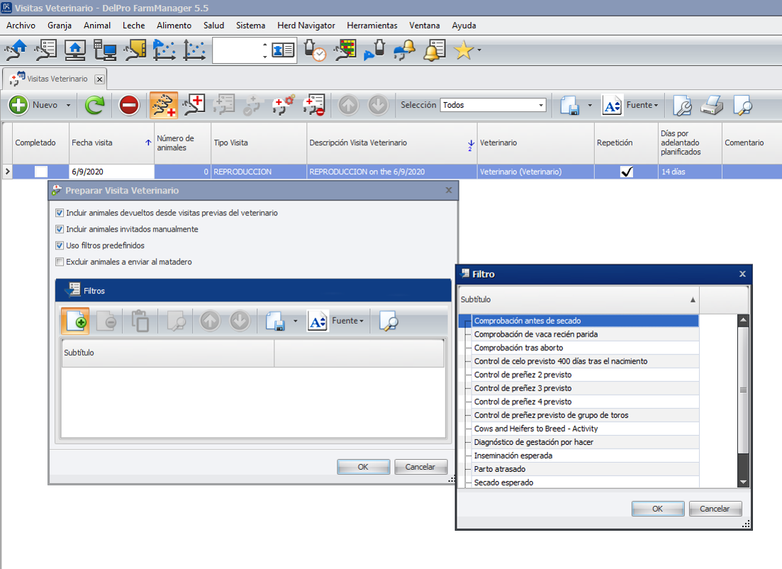 Visitas Veterinarias - Usando DelPro para seleccionar e invitar automáticamente a los animales a las visitas veterinarias