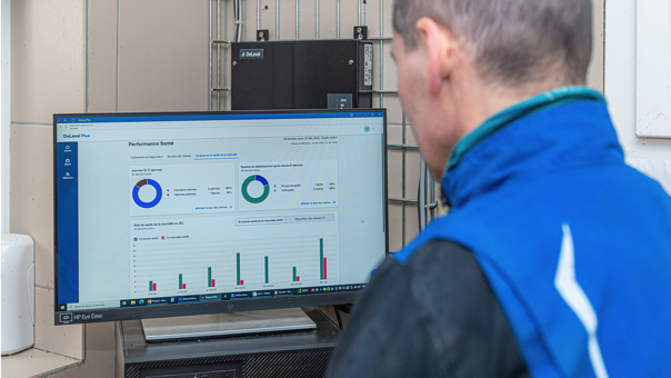 Toma decisiones informadas y seguras para optimizar la salud y la calidad de la leche basándote en información precisa y procesable de las aplicaciones de Rendimiento de Salud y Riesgo de Enfermedad de DeLaval Plus.