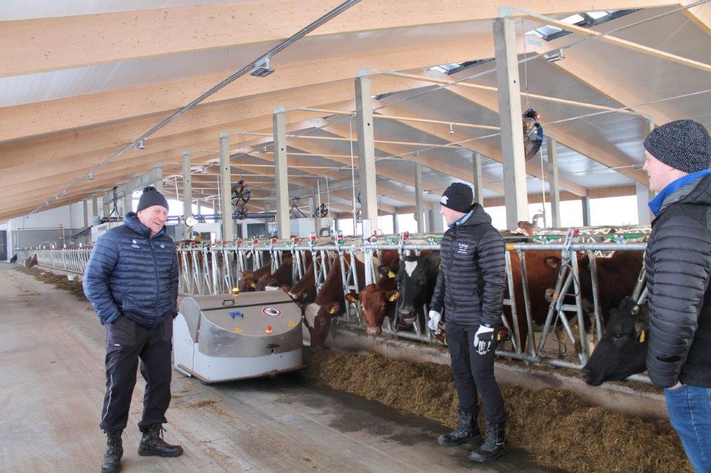 DeLaval OptiDuo söödakohendaja lükkab ja segab sööta seitse korda päevas. „See teeb väga head tööd ja raisatud sööda kogus on nüüd tõesti väike,“ kinnitavad Pentti ja Janne.