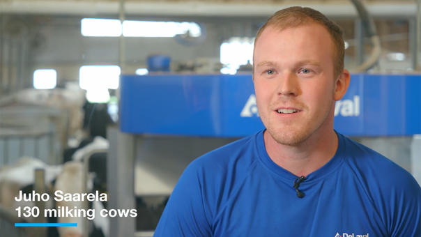 Ville Saarela Päiväniemi Oy:stä kertoo kokemuksistaan DeLavalin lypsyrobotista, käyttäytymisanalyysistä (BA) sekä lehmien hyvinvointituotteista, kuten karjaharjoista ja jäähdytyspuhaltimista. Hän on tyytyväinen DeLavalin tarjoamaan palveluun ja yhteistyöhön DeLavalin kanssa.