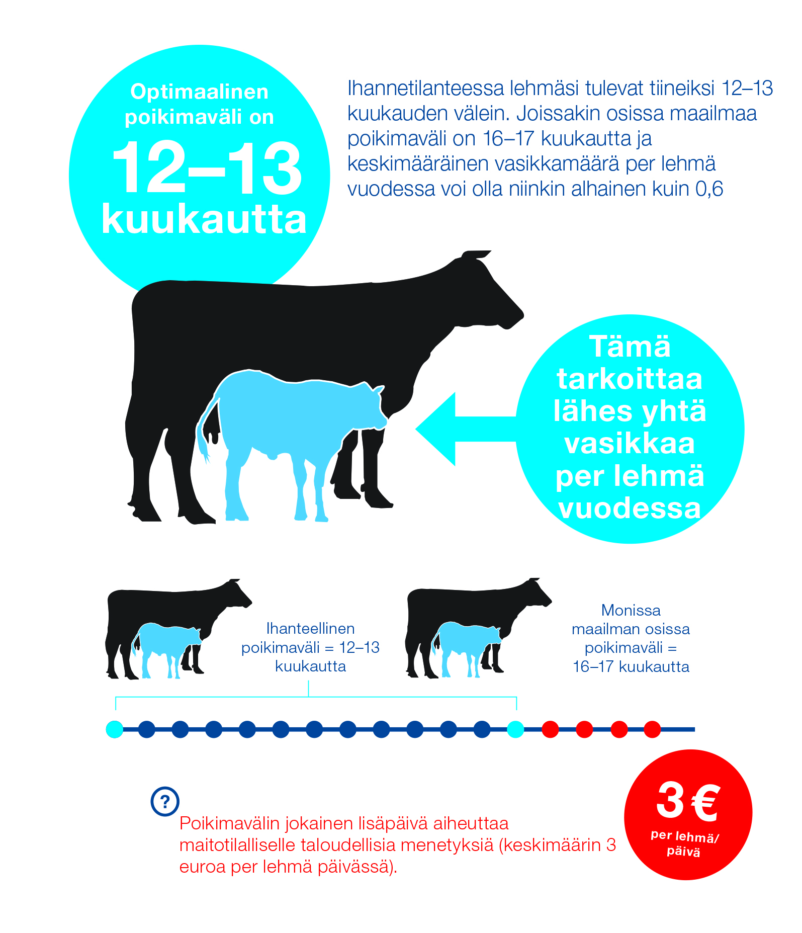 Kannattavuuden parantamisen kannalta meidän tulee siis keskittyä välttämään suunnittelemattomia poistoja, jotka johtuvat “huonosta hedelmällisyydestä”. Onnistunut hedelmällisyydenhallinta on ennen kaikkea kiinni ajoituksesta. Pelkkä siemennysajan määrittäminen silloin kun lehmä on kiimassa ei riitä, vaan oleellista on tietää, missä tuotoskaudenvaiheessa olevien lehmien tarkkailuun tulee keskittyä.