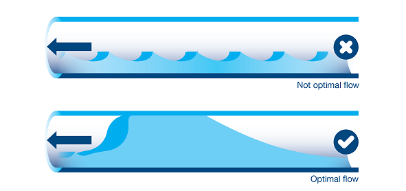 Pesupulssi täyttää koko pestävän putken. Tämä tarkoittaa sitä, että pesuliuos huuhtelee koko pestävää pintaa, myös putken yläosaa.