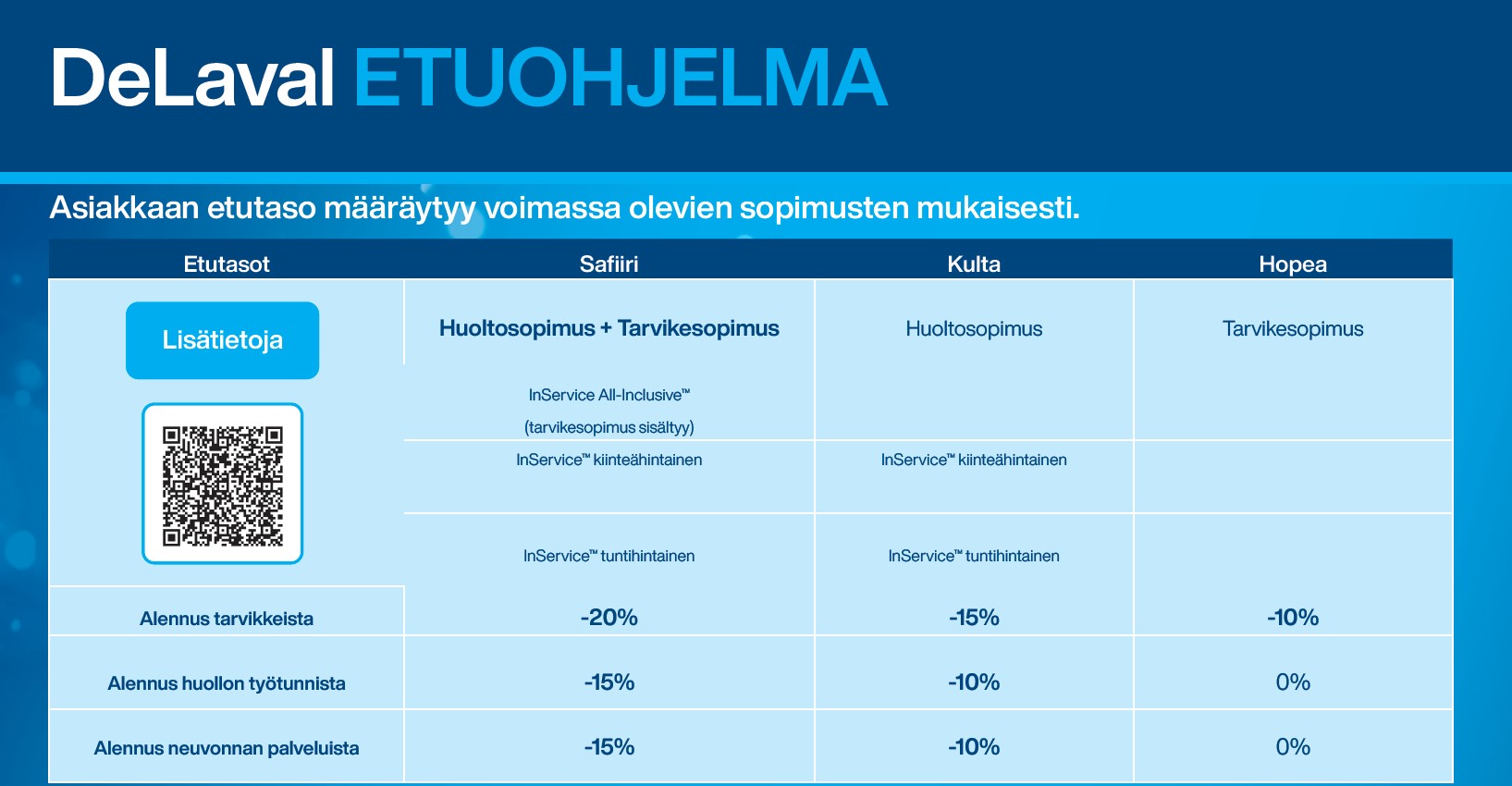 Safiiri-tason etuja pääsevät hyödyntämään ne asiakkaat, joilla on sekä huolto-, että tarvikesopimus voimassa.