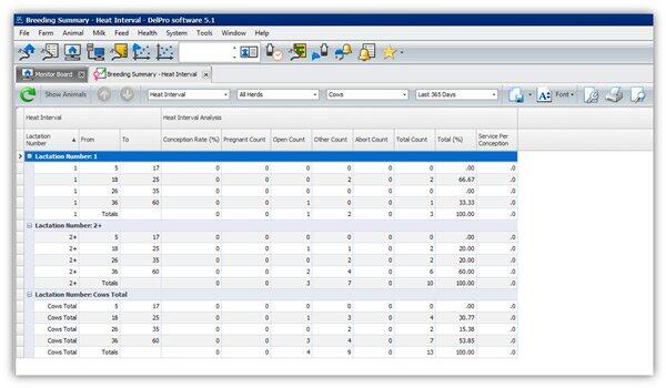 5. Retournez à Sommaire d’élevage et sélectionnez Signe de chaleur pour obtenir un sommaire des taux de conception en fonction des différents types de chaleur :