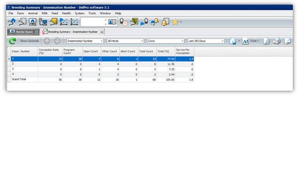 6. Allez à Sommaire d’élevage et sélectionnez Numéro d’insémination pour un sommaire du taux de conception à la 1re, 2e, 3e et 4e + insémination.