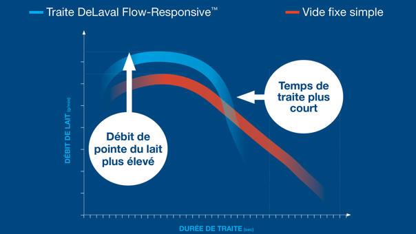 Un système de traite qui ne répond pas au débit de lait des vaches manque la possibilité d'avoir une traite plus rapide et de vous aider à protéger l'état des trayons et le bien-être des animaux. Grâce à la traite DeLaval Flow-Responsive™, votre système de traite peut, pour la première fois, ajuster automatiquement les paramètres clés pour mieux suivre et favoriser le débit de lait de vos vaches.