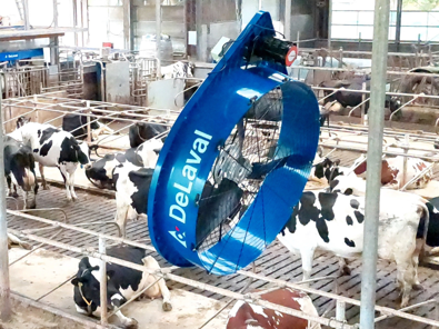 A DeLaval tehénhűtési rendszer költséghatékony megoldást nyújt a hőstressz csökkentésére, segítve a tejtermelés és a termékenységi mutatók fenntartását. A rendszer hatékony hűtőventilátorokat használ, és szükség esetén vízpermetezőkkel egészíthető ki a tehenek közvetlen hűtésére. A VMS tehénhűtés kifejezetten a fejőrobotokkal való használatra lett adaptálva.