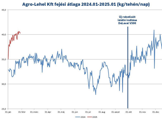 A cikk írásának időpontjában az előző hét átlagos napi tejhozama elérte a 42 kg/tehén/nap értéket.