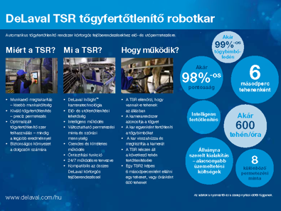 Tények és adatok a DeLaval körforgós megoldásokról és a TSR robotkarról