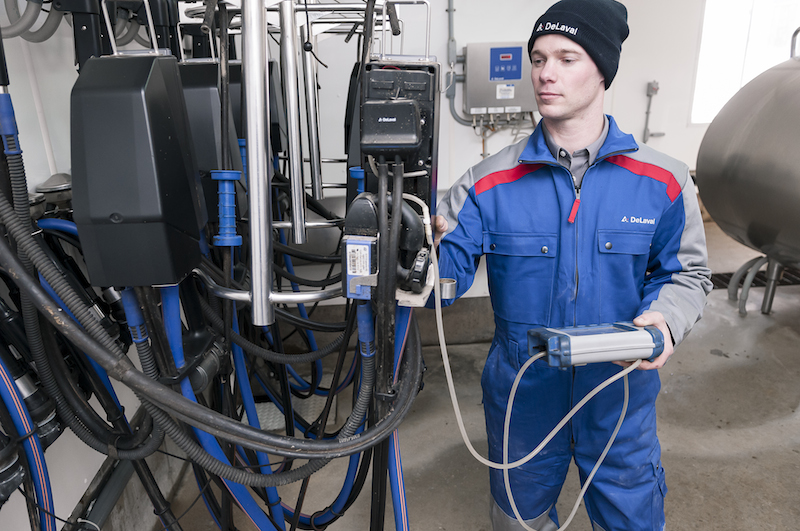 A rendszeres és ütemezett karbantartást a DeLaval szakképzett és betanított technikusai végzik professzionális és – nem ritkán - egyedi eszközök használatával. DeLaval VPR200 teljesítménymérő eszközt használnak például a fejőberendezés pontos kiértékeléséhez, kalibrálásához és beállításához. A DeLaval tesztek megfelelnek a nemzetközi szabványoknak. A berendezések kiértékelésekor figyelembe vesszük az ajánlásokat (pl. ISO6690:2007), és gondoskodunk arról, hogy a berendezések hibátlanul és a nemzetközi szabványokkal összhangban működjenek. Az NMC/ISO méretezés és tesztek garantálják többek között a megfelelően működő vákuumot és a rendszerveszteségek, szivárgások minimalizálását. A technikusok rendelkezésre bocsátják az összes szükséges dokumentumot, így biztosítva, hogy a felhasználó magabiztosan és nyugodtan működtesse berendezéseit.