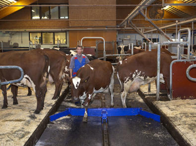 油圧式の除ふんシステムは、柔軟でコンパクト設計ながら多量のふん尿や様々な幅の通路の除ふんに対応します。