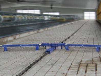 スタンチョンやフリーストール牛舎に最適な、油圧式のふん尿溝収集システムです。
