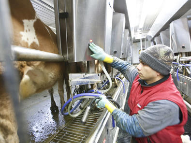 頑丈なアーム式自動離脱を設置すると、作業者の負担を大幅に軽減することができます。クラスター装着を素早く容易にし、約20%の作業時間を低減、作業者と牛の双方にストレスの少ない環境を作り出します。また、空気制御式の2方向インデックスシステムを装備することで、効率良く牛を配置することが可能です。インデックスは、牛を尻当てレールと搾乳ピットに向かって優しく押し、作業者へ近付けていくことによって、作業者の快適性と安全性を高めます。同時に、素早い搾乳作業、清潔な状態を保ちながら乳房へのアクセスも容易に行えるようになります。スイングアップ式、および垂直上昇式の全頭退出方式が幅の広い出口を作り、パーラーからの牛の素早い流れを促します。