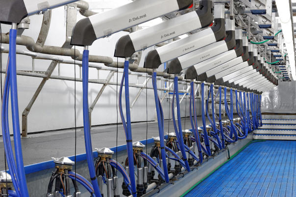 デラバルのスイングパーラー「ミディライン™」は、頭上のスイングオーバーアームシステムを採用し、作業場所を有効使用できます。最善のクラスター配列により、牛が快適で効率的な搾乳が行えます。
