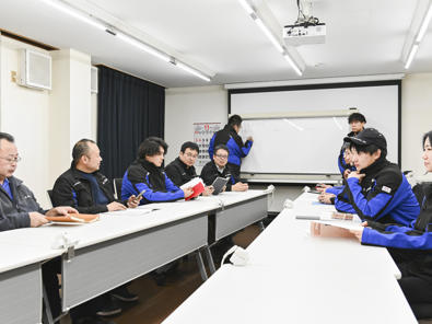 夕方は、営業所内での会議が行われる日でした。私が担当する本機営業職やメンテナンスや修理を担当するサービス職、モバイルセールス(消耗品販売)職などが会議室に集まり、情報交換を行います。ここではベテラン社員から新入社員まで集まるので、困ったことなどを相談し合いアドバイスをする場面も。