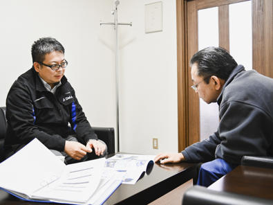 建築会社様との打ち合わせです。お客様のご希望に沿った最も最適なレイアウトを相談します。