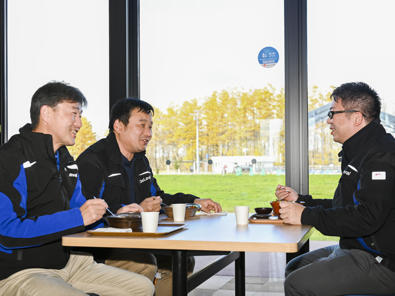 2軒訪問したところで、お昼の時間に。ちょうど、近隣を巡回訪問していた上司や同僚と昼食を取ります。お客様から得た情報をお互いに共有して、営業活動に活かします。