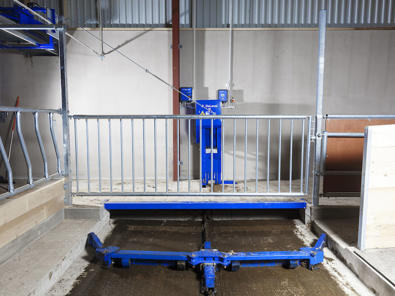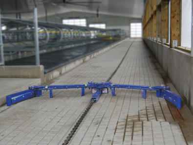 Straight blades offer a simply efficient scraper to clean away all types of manure and bedding. Depending on the kind of scraper, blades can cover alley widths from 1.2 to 5.2 meters. Blades are adaptable to the type of barn flooring: concrete, rubber, slatted or slopped floors. They are made of steel or plastic – plastic blades are designed to run better on rubber flooring. Besides cow-comfort features, they also take into consideration your needs and conveniently fold into a narrow shape, for example to let a tractor pass by in the alley.