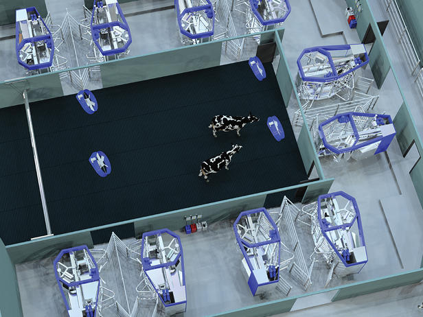 소를 데려올 노동력이 있으시다면, 자유 이동 시스템은 소에게 더 많은 자유를 제공하고 기존 시스템을 개선하는 데 이상적입니다. 저희 계획팀은 로봇 처리량과 PMR의 균형을 맞추고, 분류 후 최적의 배치를 위한 지침을 제공하여 로봇 성능 목표 달성을 지원해 드립니다.