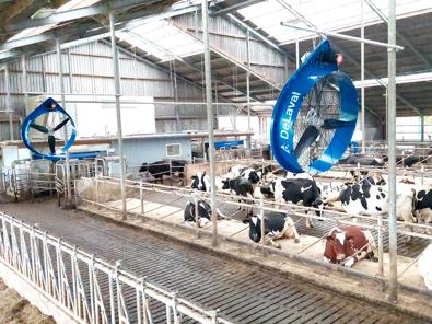 Kartu su vandens purkštuvais ventiliatorius gali dar labiau atvėsinti karvę, jei temperatūra ir drėgmė yra labai aukšta.