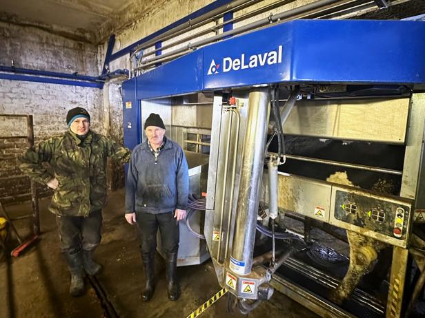 Gražvydas Kairys su sūnumi Artūru teigia, jog pagrindinė priežastis robotizuotos įrangos įsigijimui – melžėjų trūkumas.