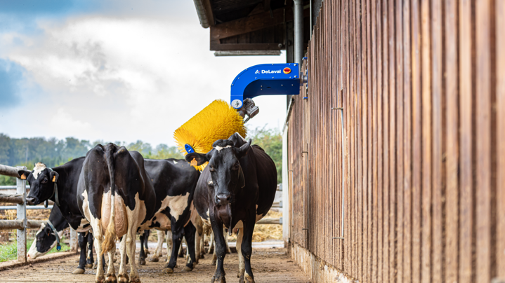 Vairāk nekā pieci miljoni govju visā pasaulē bauda labu masāžu no DeLaval rotējošās govju birstes.