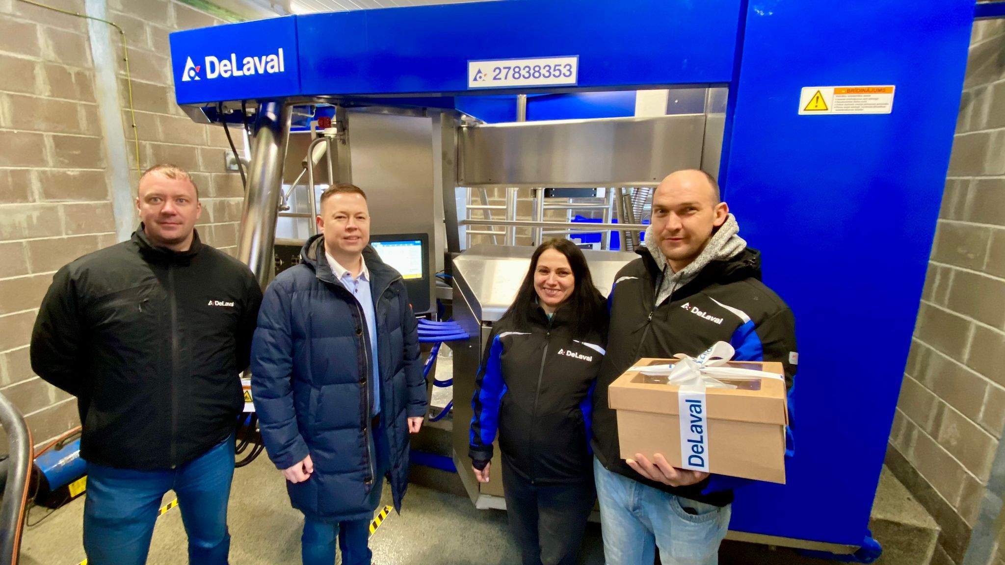Attēlā reģionālais iekārtu pārdevējs Viktors Kondratjevs un pārdošanas menedžeris Mārtiņš Majors ar saimniekiem.