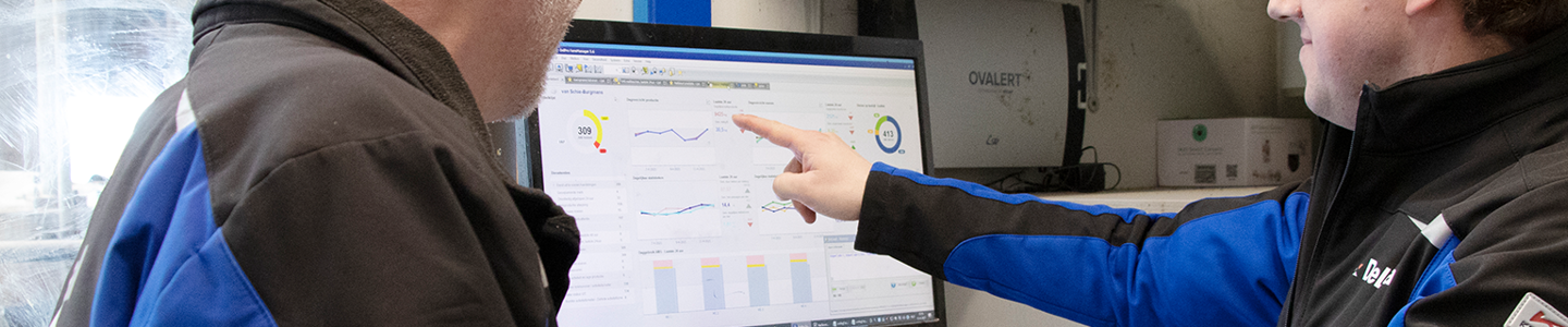 DelProTM is het Farm Managementsysteem van DeLaval wat door Burgmans dus niet alleen wordt gebruikt in de stal bij de robots, maar ook bij de complete koeling. “Dankzij de koppeling met DelProTM hebben wij een goed inzicht in het reinigings- en koelproces van de tank” aldus Maarten. “Bij eventuele calamiteiten krijgen we een melding op onze telefoon, via de ingebouwde melkwacht in de koeltank. De koeltank van DeLaval communiceert met de robots. Hij weet altijd hoeveel melk er komt en stelt zijn koelprogramma daarop in.”