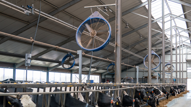 Een goed geventileerde stal is cruciaal voor het verlengen van de levensduur van melkkoeien. Ventilatie helpt hittestress voorkomen, waardoor koeien beter blijven eten en presteren op warme dagen. Door warme en ook vochtige lucht af te voeren, verbetert de luchtkwaliteit en neemt de kans op luchtweginfecties af. Schone, frisse lucht remt de verspreiding van ziekteverwekkers en vliegende insecten in de stal.