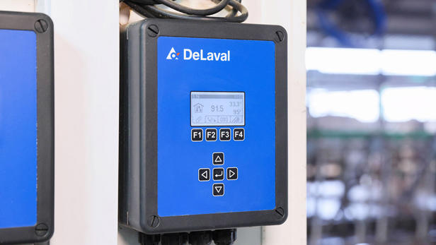 Zowel ons Cow Cooling- als stalventilatiesysteem werkt op basis van de THI (temperatuur- en vochtigheidsindex) of alleen de luchttemperatuur. Het systeem start automatisch zodra een vooraf ingestelde, en samen afgestemde sensorwaarde wordt bereikt. Vervolgens past het zelfstandig de werking van de ventilatoren én de sproeiduur van het water aan. Hierdoor is het soms mogelijk om met een lagere draaisnelheid toch een effectieve luchtcirculatie te realiseren, terwijl de luchtsnelheid aangenaam blijft. Elk moment van de dag vraagt om een andere aanpak, en daarin neemt DeLaval jou het werk 24/7 uit handen. Het systeem regelt automatisch de optimale instellingen voor uw bedrijf in relatie tot de omstandigheden op dat moment in jouw stal.