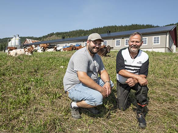 – Vi drev i to fjøs, et båsfjøs til 50 kuer og et fjøs til ungdyr. Det var tungvint og i seg selv en stor motivasjon til å samle alt i ett fjøs. Men vi telte på knappene om vi skulle satse. Det avgjørende ble at Magnus ønsker å fortsette driften. Hadde ikke han vært interessert, ville det neppe stått et nytt fjøs her, sier Gunnbjørn.