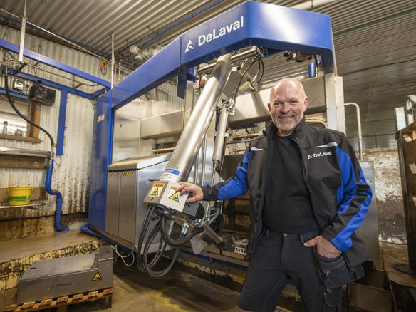 – Jeg må si at jeg er ganske imponert over hvor godt roboten går. Vi har ikke lært opp ei eneste ku. Vi bare jaget kyrne inn i roboten og så har den gjort alt selv. Vi har hatt ei ku med vanskelig jur som den virkelig har fått prøvd seg på, men det har den fått til. Det hadde jeg virkelig ikke trodd. Det er faktisk lettere å håndtere vanskelige dyr i roboten enn i melkestallen, for i roboten har spenekoppene separate slanger. Vi har ikke rangert ut noen kyr på grunn av roboten, sier Lund.