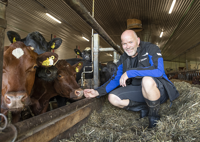 – Det er herlig å kunne sitte her å si at jeg er ferdig i fjøset, smiler Frode Lund. Vi sitter på terassen på Storborg Østre i Levanger, og Lund forteller om sin nye hverdag etter å ha byttet ut den gamle tandemstallen med en VMS™ V310 melkerobot.