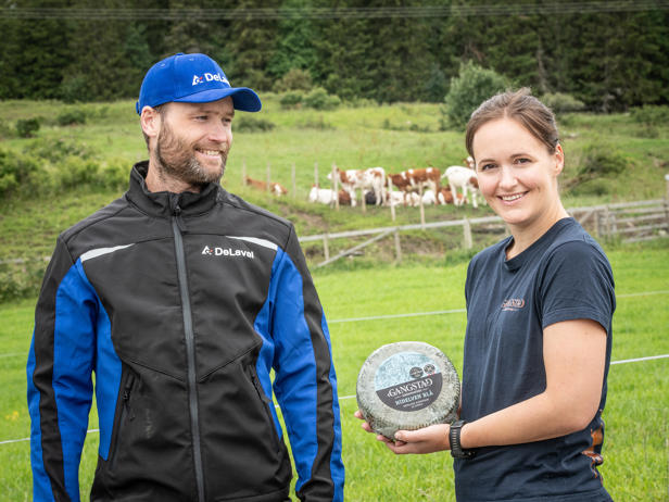 – Det er drifta av ysteriet som gjør at vi kan bygge et slikt fjøs, sier Ole Morten Gangstad (35). Han har ansvaret for fjøset og gårdsdrifta, mens kona Maren er daglig leder i ysteriet.