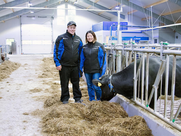 – Me har aldri sett oss tilbake, seier Lene og Gaute Haugland. I det splitter nye lausdriftfjøset gir roboten DeLaval VMS™ V300 inspirasjon og auka kunnskap om produksjon av mjølk.