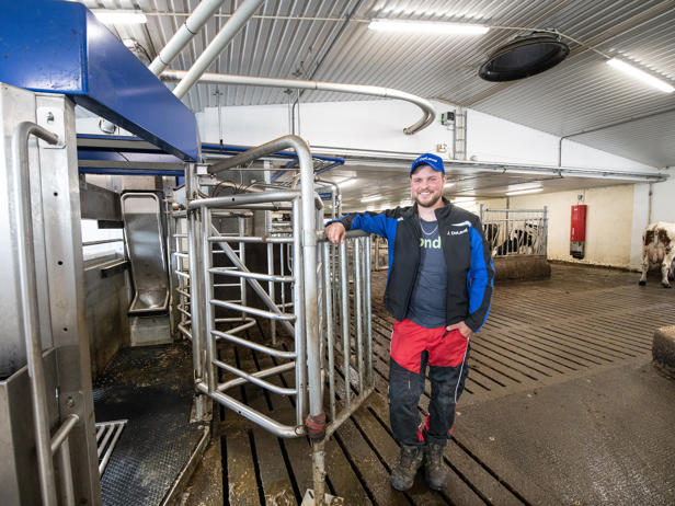 – Det har blitt en lettere hverdag. Nå gjør jeg fjøsstellet skikkelig på halvannen time. Da føler jeg at jeg har hatt kontakt med dyra, og jeg har fôret kalver, vasket roboten og skrapet. Dessuten har ytelsen skutt i været. Siden vi flyttet inn og tok i bruk melkeroboten, har det ikke vært én dag med snittytelse under 30 liter, sier Matias, som forteller at melketanken på 4 000 liter ble for liten etter bare tre måneder.