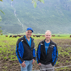– Den nye er raskere. Påsettet går raskere og vi har lite ufullstendige melkinger. Det går også mye raskere å lære opp nye kyr i roboten. Alt dette betyr spart tid for hver melking og større kapasitet, sier Per Jarle Myklebust. Det er han og Geir Thomas Myklebust som er de to partnerne i samdrifta.